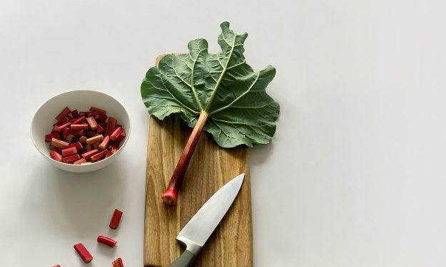 Rhubarb crumble Each month we highlight the best of British seasonal produce in a delicious recipe for you to make at home, with this month’s star being rhubarb. The pink stems of rhubarb are unmistakable in both the supermarket and the garden. It is one of the easier plants to grow at home…